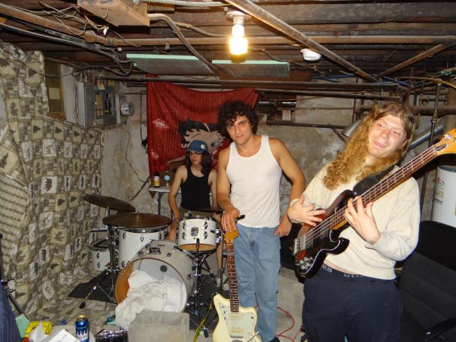 Below is my long conversation with the Philly/Connecticut diy trio Microgoblet. From my point of view this band seemed to pop up out of nowhere, bringing a unique and mysterious energy that I couldn’t quite put my tongue on. Instead of letting them become another victim of obscurity by my mind’s ideas, I decided to ask them for an interview. They politely agreed. So on a late weeknight evening after seeing a wonderful bill which was the Walker Rider show at Abyssinia, I made my way to their turf in West Philly to ask some questions, get some answers, and shoot the shit. Comprised of Luke Shroeder on bass (left), Adam Cohen on guitar and vocals (middle), and Myles Vincent on drums (right), Microgoblet let loose… in the chillest way possible.