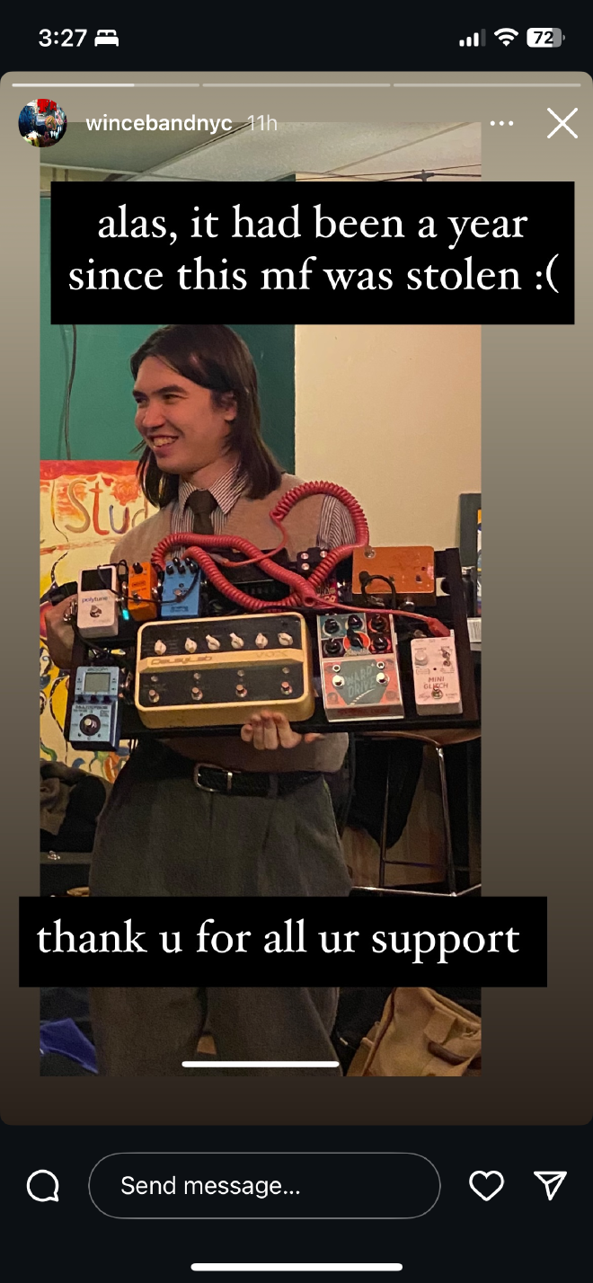 You just posted a photo from that show, from that green room with your pedal board because it got stolen… #